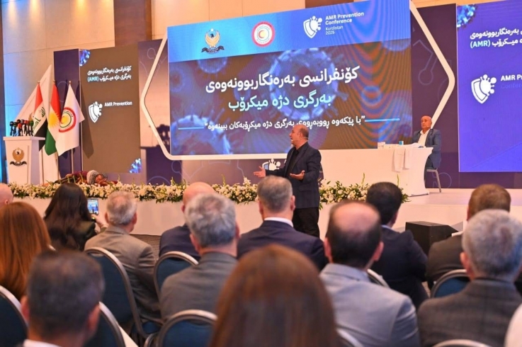 Today, Tuesday, November 25, 2025, in the presence of Dr. Saman Barzanji, Minister of Health, Omed Khoshnaw, Governor of Erbil, Chia Harky and Chinar Saad, Assistants to the Head of the KDP Organizing Bureau in Erbil, Falah Hassan, Head of the Department of Non-Governmental Organizations, Dr. Dilovan Mohammed, Director General of Health in Erbil, representatives and consuls of countries, and a significant number of doctors, health workers, and hospital staff, the Ministry of Health of the Kurdistan Regional Government held an Antimicrobial Resistance Prevention Conference on the occasion of World Antimicrobial Resistance Awareness Week, under the title "Let's Fight Antimicrobial Resistance Together."