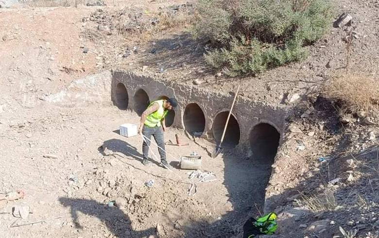 Clearing rainwater path and opening bridges and cleaning all the waterways and culverts on the main road (Doli Smaquli) by the teams from the fourth sector of the Erbil Road Repair and Protection Directorate.