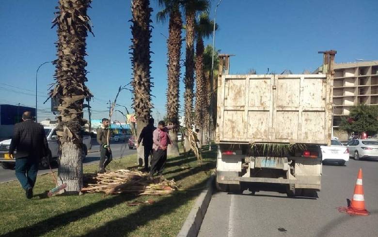 Arrangement and beautification of trees on 60 meters street, by the teams of Erbil Parks and Gardens Engineering Directorate.