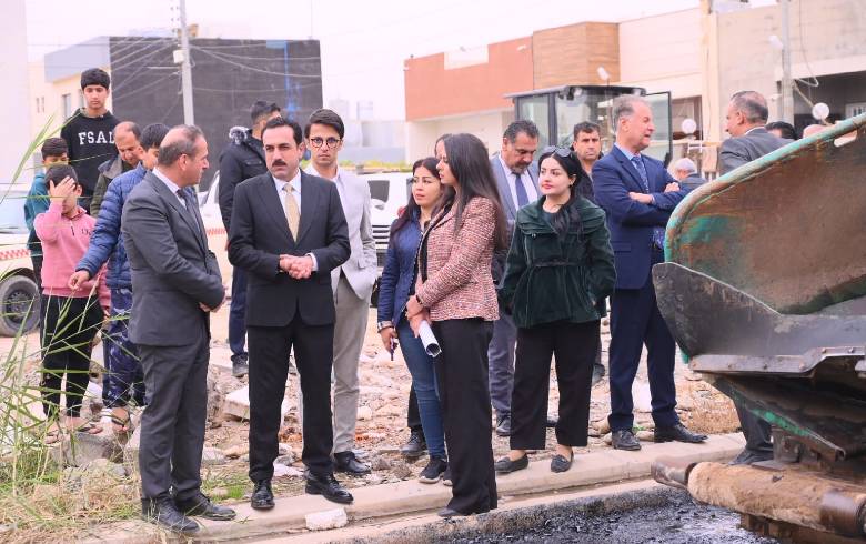 Today, Monday, December 12, 2022. Erbil Governor Omed Khoshnaw, accompanied by Deputy Governor Massoud Karash, Head of Erbil Municipality, Abdulwaheed Ahmad, Director of Municipality Four and a number of other engineers and supervisors of the project. The second phase of the project of paving the internal streets of 8 Hazary Farmanbaran neighborhood has started at a cost of (700 million dinars) on the development budget of Erbil governorate. About that, the governor of Erbil stated: “This year, we have implemented several other service projects in this neighborhood and other neighborhoods of the city, we will make more efforts to deliver service projects for the remaining time, and we will certainly provide better services to our governorate next year with the support of Mr. Masrour Barzani, Prime Minister of the Kurdistan Regional Government.". The governor assured the citizens that within the framework of the development projects of Erbil governorate, all the remaining places that have not received services, will receive services and prosperity equally. He also said: “We understand the demands of our citizens, God willing, according to the available resources in the shortest time to deliver as many service projects in all areas of our governorate.". It is worth mentioning that the second phase of the project is being implemented at a cost of 700 million dinars on the development budget of Erbil governorate. The project will be implemented which consists of 45 streets; 14 streets have been paved and 7 streets are ready for paving with an area of 6800 m2.