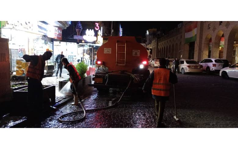 Washing the streets inside the main Bazar of Erbil Dec 18 2022 Washing the streets inside the main Bazar of Erbil and cleaning the North Industry and South Industry, by the teams of the Directorate of Services and Environmental Protection. Read also Congratulatory Message from the Governor of Erbil on the Occasion of the Assyrian-Babylonian New Year (Akitu) Congratulatory Message from the Governor of Erbil on the Occasion of Newroz and the Kurdish New Year Erbil Governor's Congratulations Message on the Occasion of Eid al-Fitr Prime Minister Meets with Erbil Crisis Management Operations Room