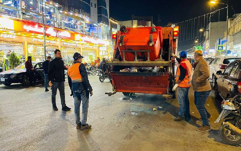 After the final match of the 2022 World Cup, all the garbage and debris on Iskan Street was cleaned up last night by the teams of the Erbil Environmental Protection Directorate.