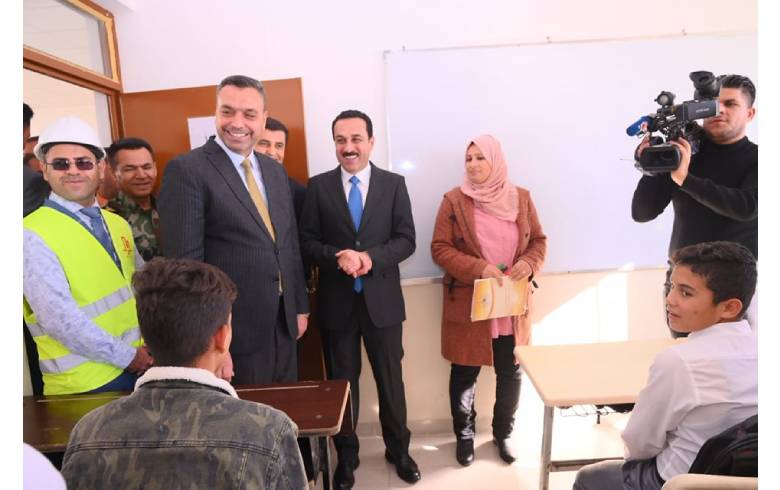 On Monday, December 19, 2022. Erbil Governor Omed Khoshnaw, accompanied by Makhmur Mayor, Rzgar Mohammed, Gwer subdistrict Director, Massoud Nuri, Director General of Education of Nineveh and a number of other officials of the administrative unit of the area, within the framework of joint projects of the Kurdistan Regional Government and OP Erbil Kurdistan, opened a secondary school and a stadium for six players in Tarash village of Gwer subdistrict.