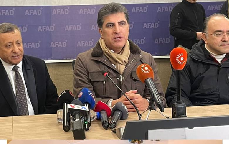 After his arrival, Nechirvan Barzani visited the office of the Presidency of Disaster and Emergency Management (AFAD) in Dilok province and held a press conference in the presence of the governor and deputy governor of the province.