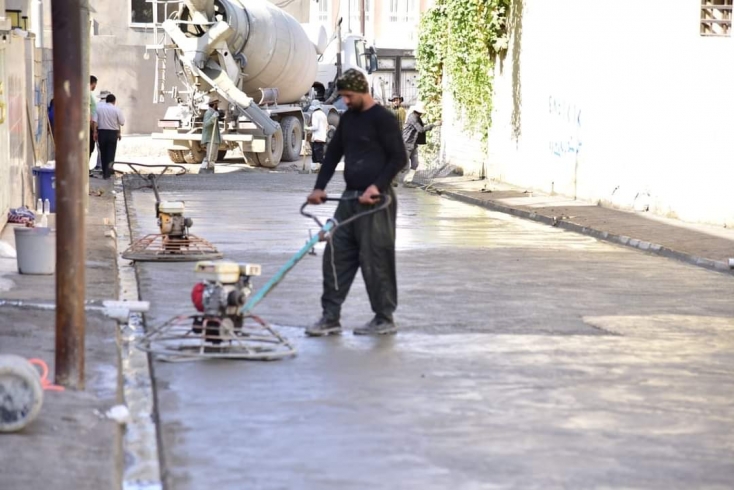 تەیراوە... کۆنکریتکردنی بەشێک لە شەقامە تێکچووەکانی
